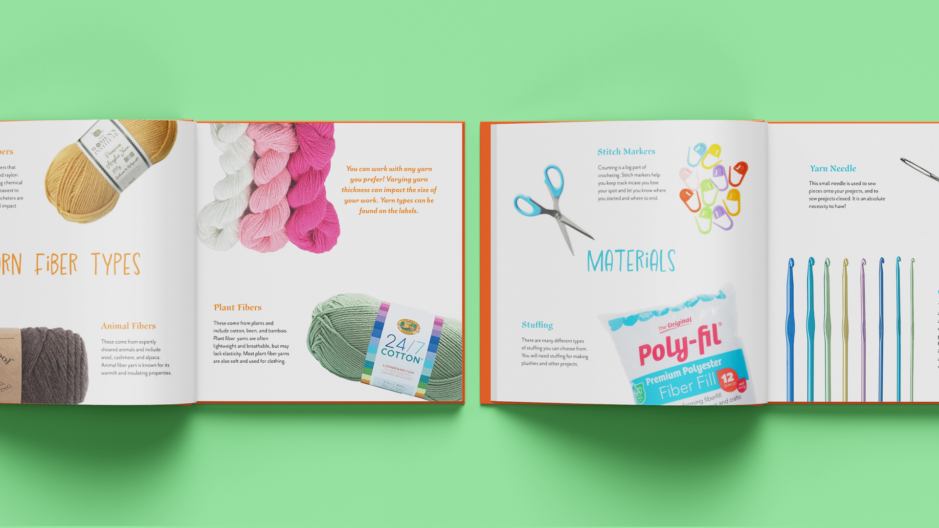 Hooked on Crochet is a book designed with beginner crocheters in mind. Materials needed, basic instructions, and beginner-friendly patterns are all included in one place. The bright and colorful atmosphere invites the crocheter to feel less intimidated and have fun with the process.